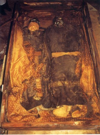 墓为竖穴土坑石椁墓,土圹平面凸字形,内置大小两具石椁。小石椁为附葬,大石椁内有木棺,棺盖板中央的银牌饰上有“太尉开府仪同三司齐国王”铭文。木棺内葬男女二人,男左女右,尸骨保存完整,尚未腐朽。二人身体均包裹多层衣物,其中男性着八层十七件,女性着九层十六件,这些服饰华贵精美,色泽鲜艳,制作精致,具有古代北方民族服饰的特点和风格,并完好保存了当时的穿着方式。在墓主二人头后有一墨书木牌,上写“太尉仪同三司事齐国王”十字,进一步标明了墓主人的身份。经鉴定死亡年龄约为男性六十岁、女性四十岁。根据墓葬迹象、随葬遗物及文献记载分析,此齐国王可能这完颜晏,卒于金大定二年(1162)。