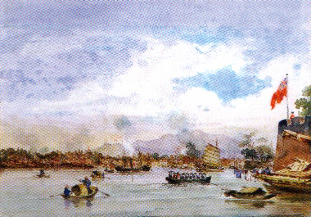 水彩《黄埔港的英国军舰》(19世纪中期)