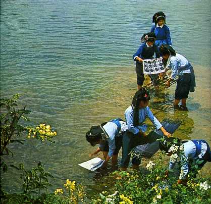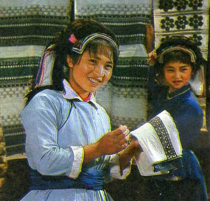 布依族姑娘妹玛(左)和妹娥都是民间蜡染巧手。