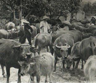 近几年来,富川县养牛事业发展很快。图为兴旺的耕牛集市。(1979年)