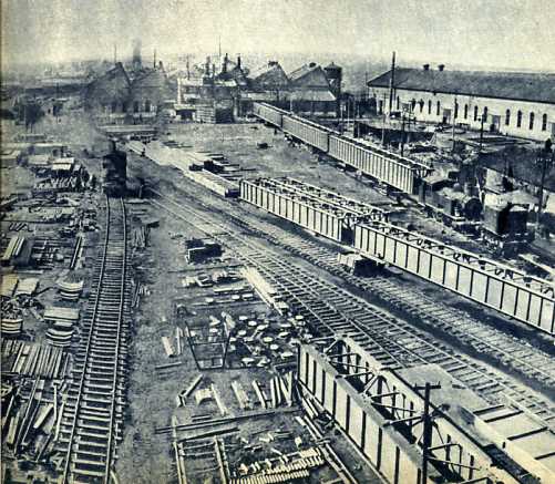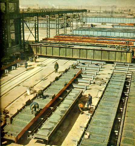 总拉装车间。在这里经过整孔拉装、铆合及涂油漆后,就完成了钢板的制造。