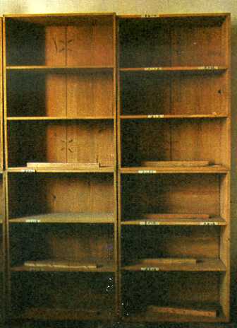 周副主席的两用书架,平时打开可以放文件、书报,战时转移,两个合起来就是箱子。