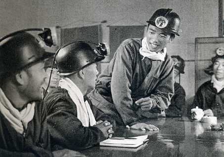 社会主义劳动竞赛在开滦煤矿全面展开。图为赵各庄矿楚井秀小组在讨论竞赛计划。