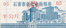 非农业购粮劵(伍公斤 1991年)