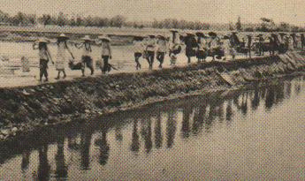 松滋油菜,素以高产著称。图为社员们在抢运油菜。(1960年)