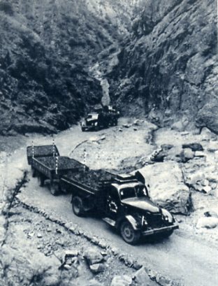包头市第一运输公司的汽车队在山路上试行多挂拖车成功,一部汽车的载运量一般等于4部汽车。