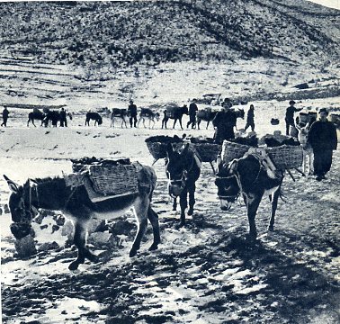 凌源县全胜农业社自办的小煤窑在给用户送煤。这样的小煤窑全县共有22座,既不用国家投资,又能增加农民收入。(1958年)