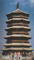 佛坐像—木塔四层。应县木塔內部的塑像,在“文革”中遭破坏。1974年检查其残破狀況时,在第四层释迦坐像內发现装像秘藏,有辽代经卷、佛画共92件(组)。辽藏,前此已绝迹人间。