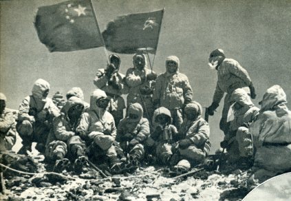 7月31日,慕士塔格山峰第一次印上了人类的足迹—经过6天的搏斗,31名中苏队员全部爬上了山顶。