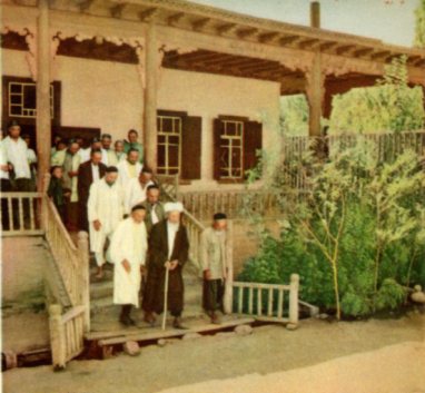 伊斯兰教的阿訇和亲友们到阿依甫的家里拜年。