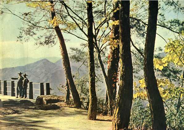 秋天了,雪窦山显现出一番新景色。山中有名的古刹—雪窦寺的红墙碧瓦与寺前的枫叶交相映辉。此寺相传建于晋朝。