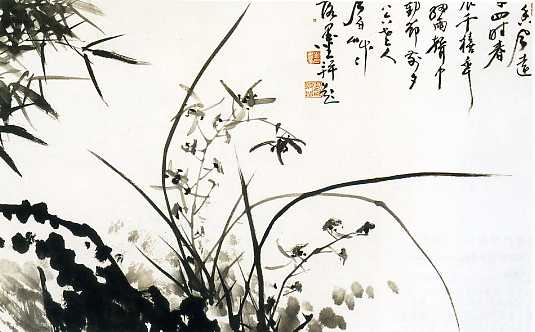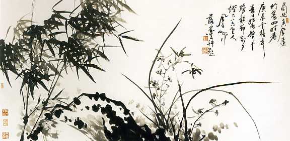 纸本墨色《兰幽香风远》(138x70cm)2000年 自藏