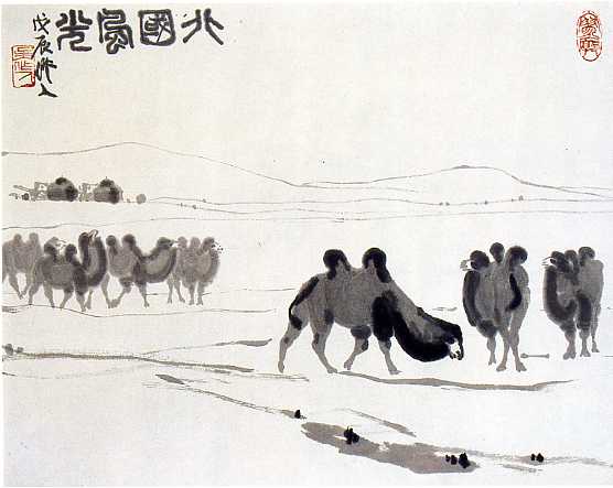 纸本水墨《北国风光》(42x51.5cm)1988年