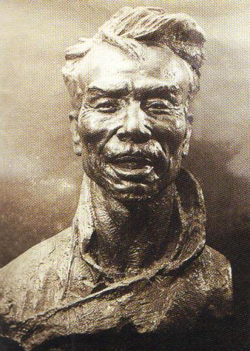 鲁迅先生坐像铸铜工作现场(中间者为萧传玖)