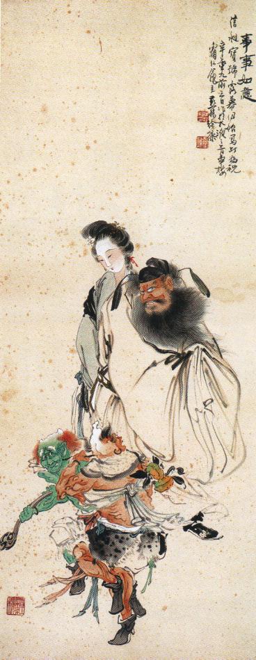 纸本设色《事事如意》(103x40cm)1941年 北京画院藏