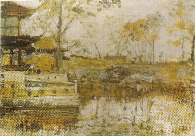 油画《普陀乐土》(16x24cm)1934年 自藏