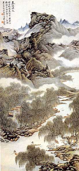 纸本设色《绿杨草堂》(89.5x47.5cm)1940年