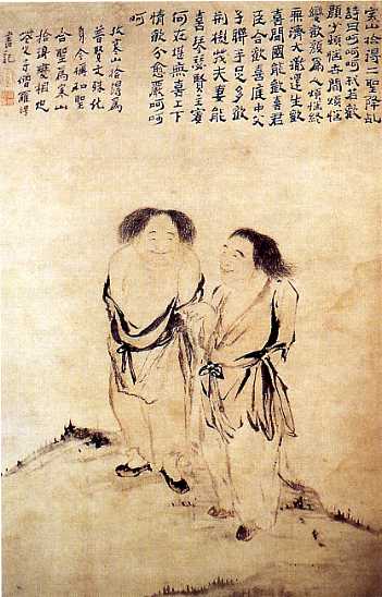 纸本淡设色《寒山拾得图轴》(78.3x51.4cm)美国堪萨斯州纳尔逊美术馆藏