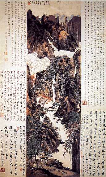 纸本设色《剑阁图轴》(101x27.1cm)北京故宫博物院藏