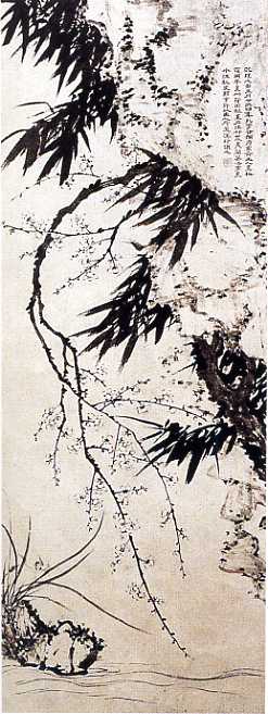 纸本墨笔《梅兰竹石图轴》(136x50cm)山东省博物馆藏