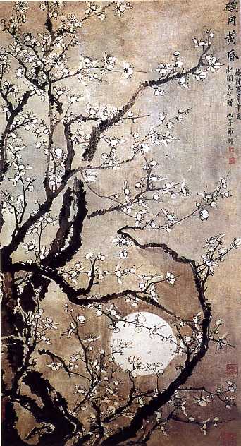 纸本墨笔《蹊月黄昏图轴》(68.5x37cm)广东省博物馆藏