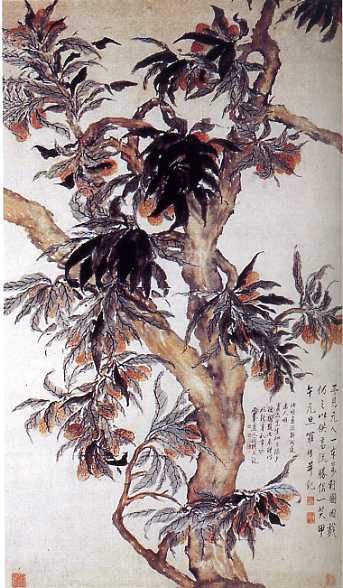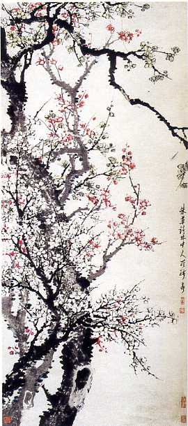 纸本设色《三色梅图轴》(118.4x51.2cm)吉林省博物馆藏
