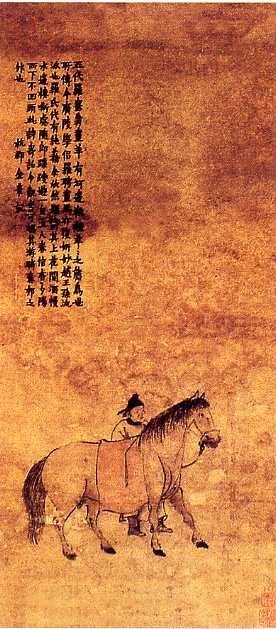 纸本设色《游骑春郊图轴》(97x43.7cm)旅顺博物馆藏