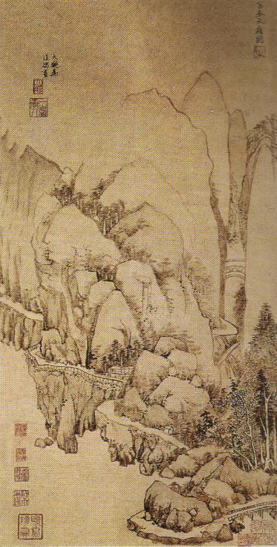 绢本水墨《九峰雪霁图轴》(117x55.5cm)1349年 北京故宫博物院藏