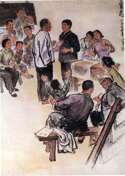 中国画《一个哲学学习小组》冯建鑫、朴镇斗、蓝玉林、王庚定