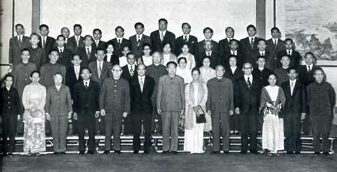 中共中央、国务院一九七七年十一月二十日举行盛大宴会,热烈欢迎黎笋总书记率领的越南党政代表团、华国锋主席主持了宴会。邓小平、李先念、汪东兴副主席出席了宴会。这是宴会前合影。