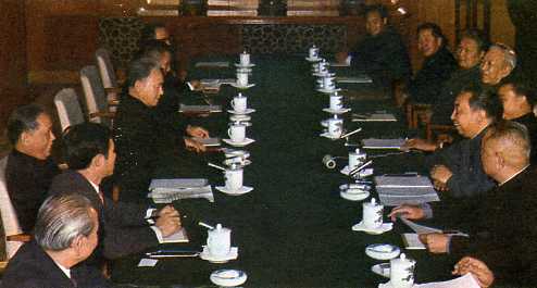 中国共产党委员会主席华国锋。一九七六年十二月十四日会见了澳大利亚共产党(马克思主义)主席爱•弗•希尔和夫人乔伊斯•希尔。