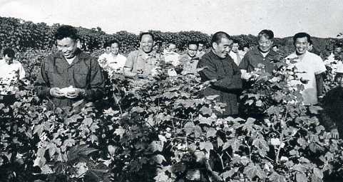中共中央政治局委员、国务院付总理陈永贵,应柬埔寨共产党中央委员会和民主柬埔寨政府的邀请,于一九七七年十二月四日至十二月十五日对民主柬埔寨进行了友好访问。这是陈永贵同志由柬共中央书记、政府总理波尔布特同志陪同,在西北部大区维甲山参观棉田。