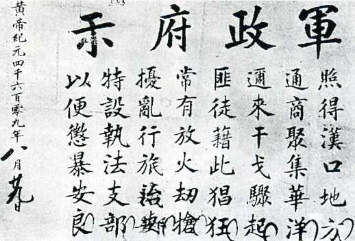 湖北军政府发布的布告。
