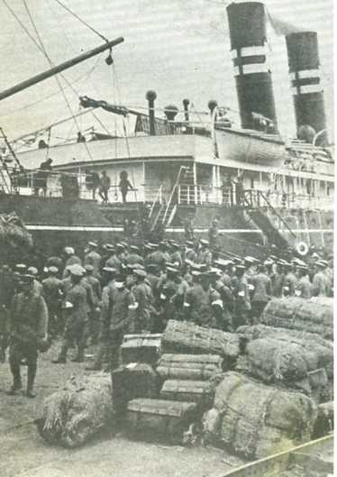 1928年5月3日,日军出兵山东,企图用武装威胁的方法迫使国民党政府屈服,以对抗英美势力的发展。图为日军登陆山东半岛。