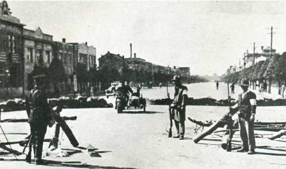 日军19日占领沈阳。图为日军装甲车开进沈阳。