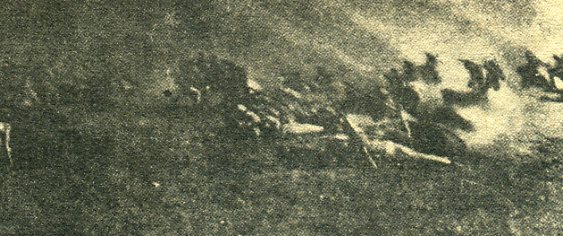 二十九军阵地遭敌机轰炸,部队人马偃卧作战。