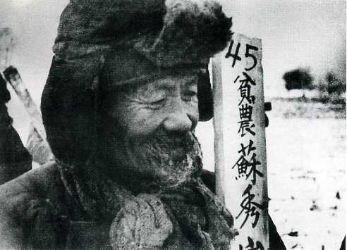 老贫农分得了土地,喜气洋洋。