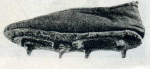 红军女战士翻雪山时穿的带有脚码子(防滑用)的鞋。